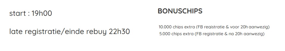 VRIJDAG 24 OKTOBER - PROGRESSIVE BOUNTY - 100.000 CHIPS € 40 BUY-IN
